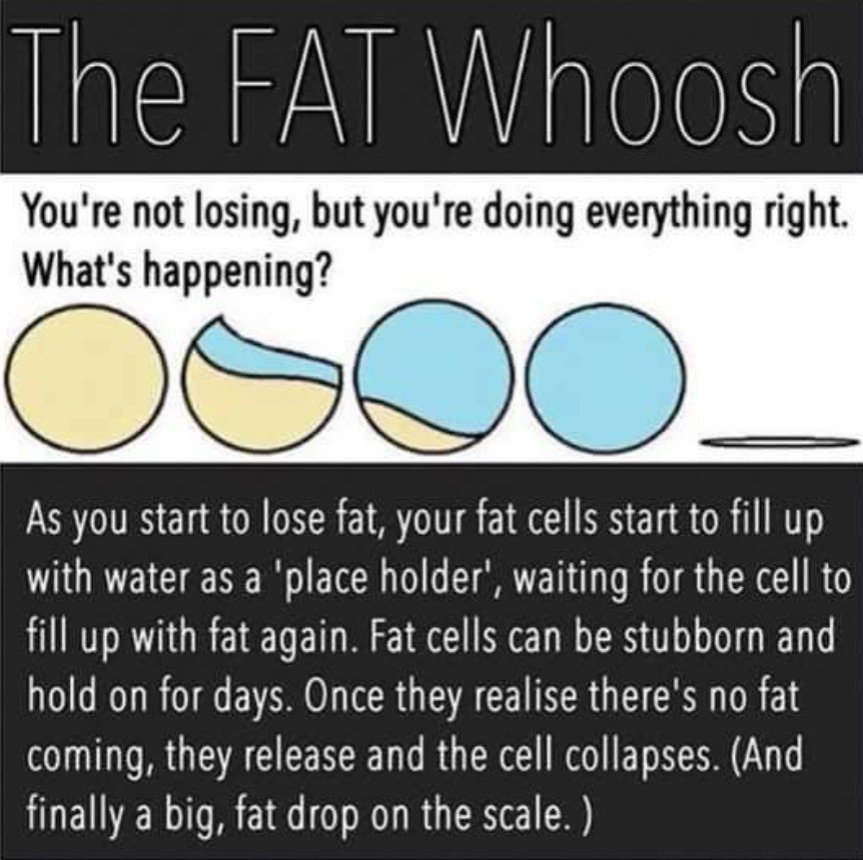 Every body is different. As you start to lose fat, your fat cells start to fill up with water as a “placeholder”, waiting for the cell to fill with fat again. Fat cells are stubborn and hold on for days. Once they realize there’s no fat (source: glucose) coming, they release and the cell collapses…resulting in a big “whoosh” or fat + bloat drop. Many times this is apparent on the scale as well, but not always. This can happen very early in the process or later on to day 7 or 8 or even day 20+. Again, every body is different.